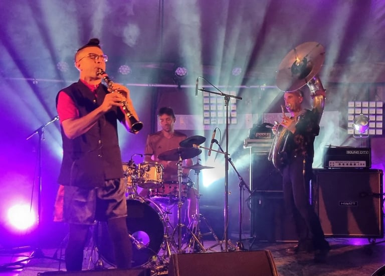 Le trio sousa/clarinette/batterie détonne par ses mélodies poétiques et sa hargne rythmique. Ses compositions parfois furieuses confrontent l'improvisation à la transe électro.